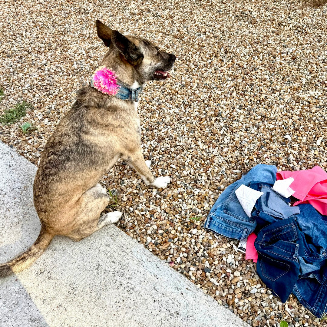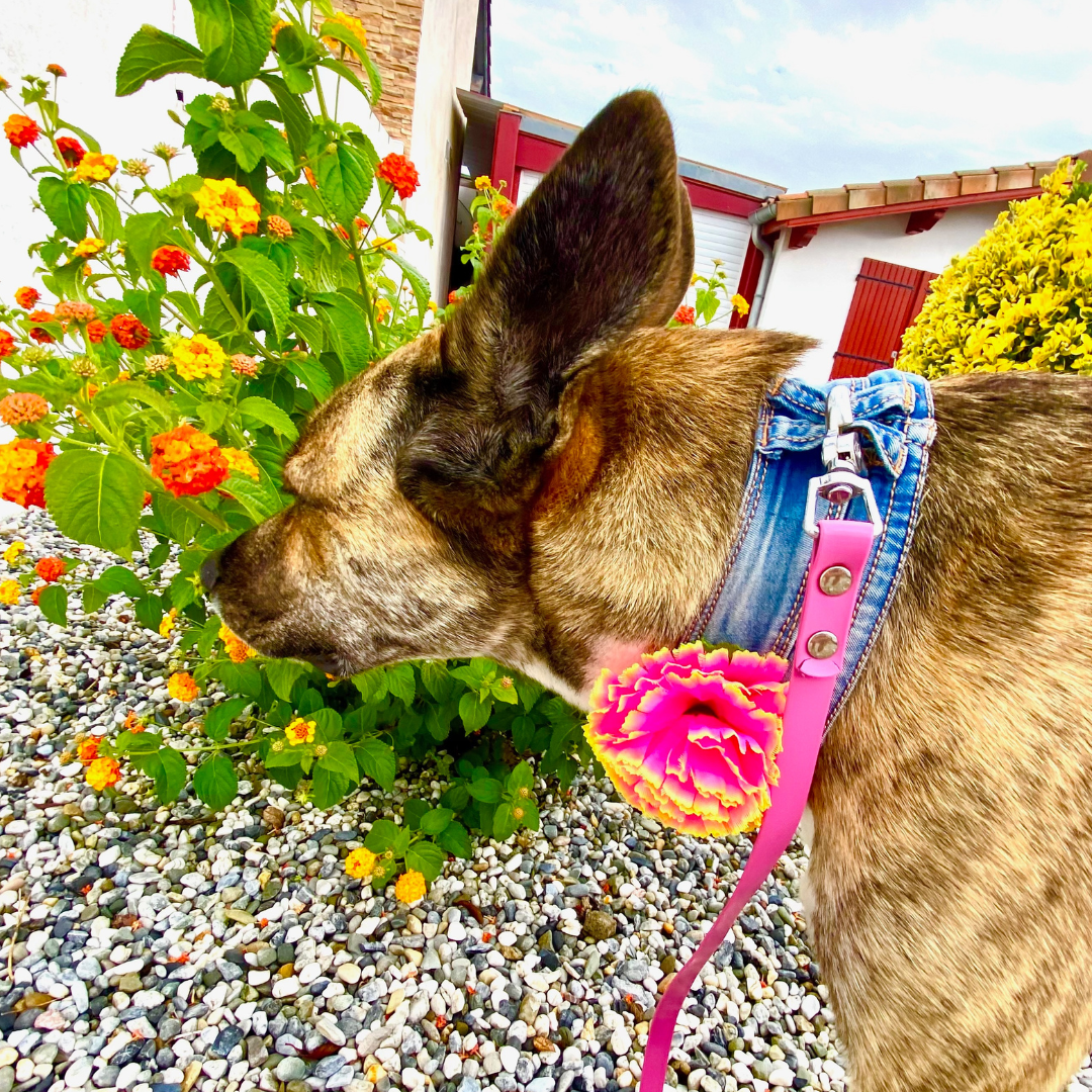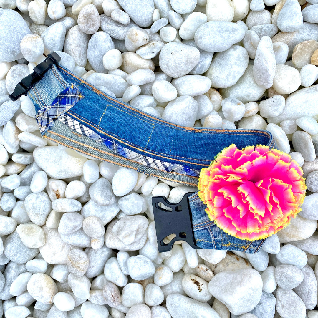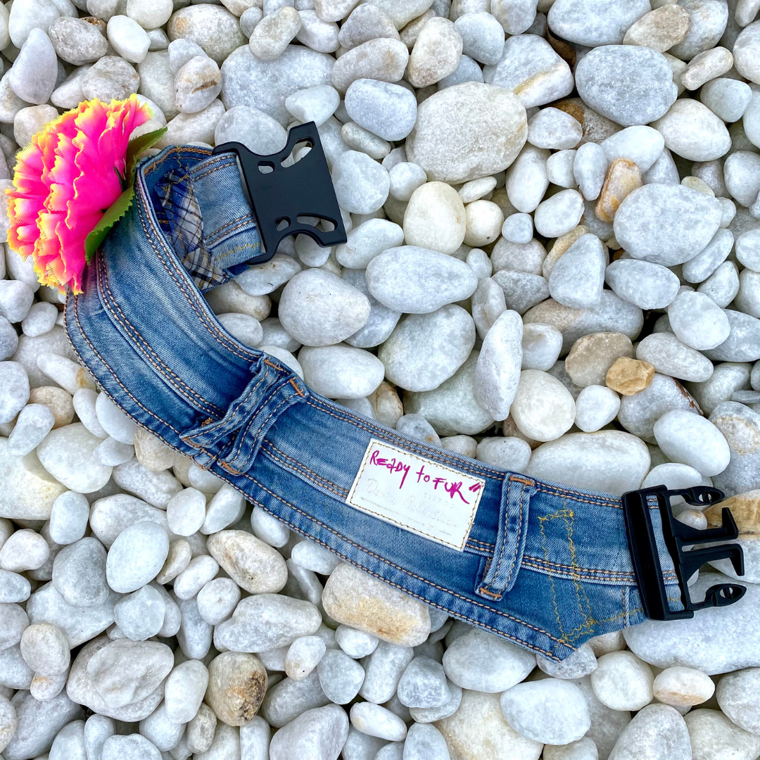 This collar is a prototype to mainly represent the denim material of future pieces. 🐾 Each design will be one-of-a-kind, made with upcycled materials & equipped with a metal buckle. ♻️ 🧵 🔥