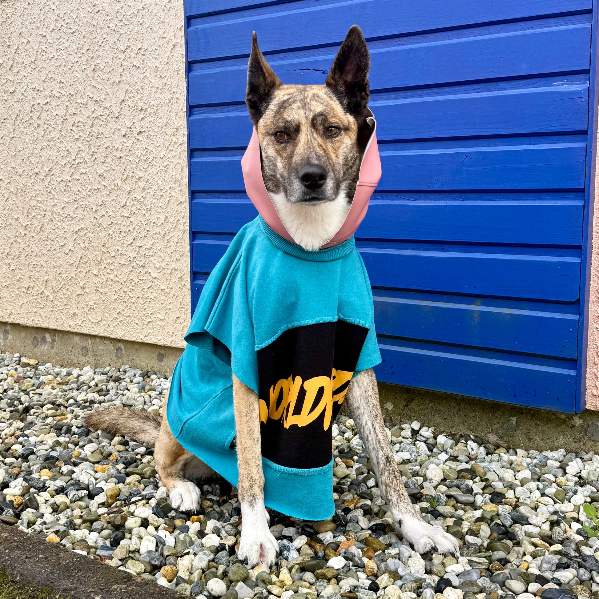 Lulu is named after a tiny puppy I rescued from a trash field high up on a hill in Baja, MX. I took her and her three siblings home. My neighbor, who helped me foster them, later on adopted Lulu and she found her forever home. This hoodie is dedicated to her and all the dogs who deserve freedom, comfort, and love.